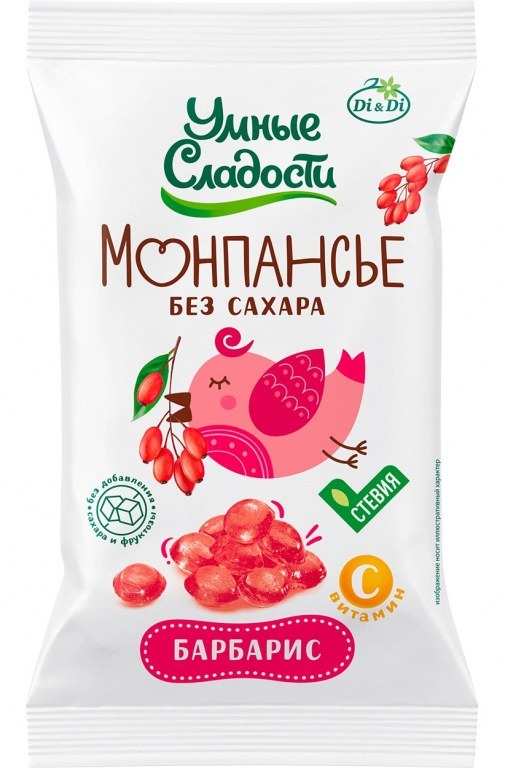 Состав:" подсластитель - изомальт, вода питьевая, патока крахмальная карамельная, регулятор кислотности - лимонная кислота, аскарбиновая кислота (витамин С), ароматизатор ""Барбарис"", краситель - кармин, подсластитель - стевиозид (стевиолгликозиды). Могут содержаться следы яичных и молочных продуктов, ядер орехов и арахиса.